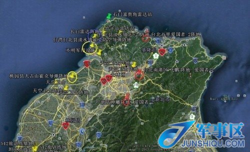据台湾《旺报》18日报道,大陆网友通过谷歌卫星图片整理出来的台湾防空导弹、雷达等阵地的37张卫星照片,详细标出所在位置并进行分析,其中防卫台北地区的3个“爱国者2”型导弹阵地的所有地面建筑及机动车辆都被曝光。