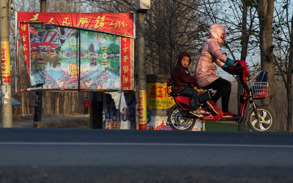民主中小学位于河南省周口市淮阳县四通镇,学校附近马路旁原本挂着毛泽东像,现在已经残破。