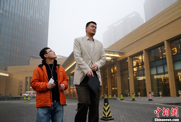 2月28日早上,北京遭遇严重空气污染,刚走出政协委员驻地酒店的全国政协委员姚明抬头看天,皱起眉头。