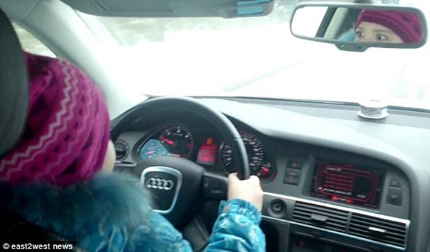 俄罗斯一男子迫8岁女儿高速开车引争议(1)(3)