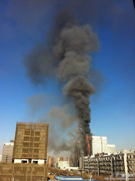 天津南开区一高层建筑突发大火(1)(2)
