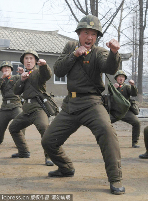 朝鲜备战的男女士兵苦练拳练枪法(1)