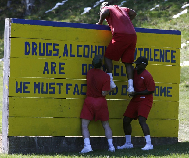 在“信心课程”上,一名服刑人员正在帮助他人。
