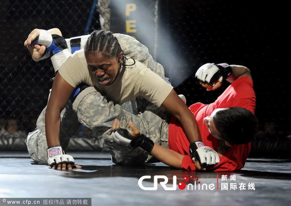 据英国《每日邮报》4月26日报道,为了证明女性同样可以上前线参加战斗,一些美军女兵参加了“笼中格斗”比赛,与男兵进行激烈的对抗。