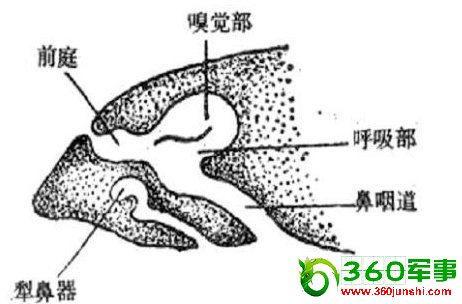 犁鼻器现在已发挥不了任何功能的嗅觉器官,在过去可能是用来接受外激素的一种痕迹器官。
