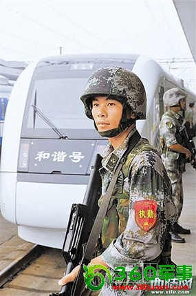 资料图:济南军区部队军人有序登上动车组进行机动